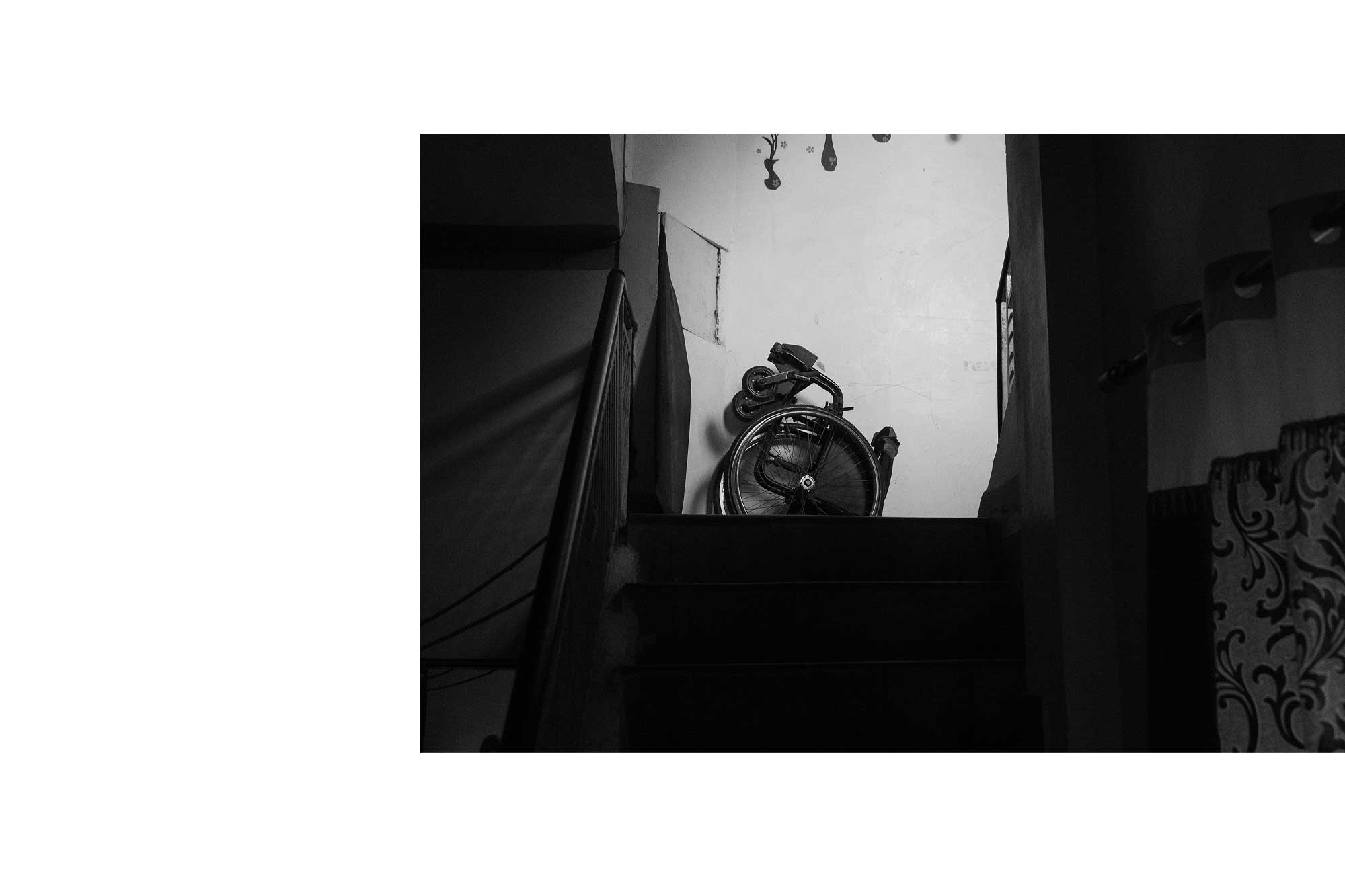 The series expands beyond individual portraiture to address broader socio-economic structures. It asks what happens to lives shaped by a disease once public health attention shifts elsewhere. For many polio survivors, mobility impairment is compounded by limited employment opportunities, inadequate infrastructure, and inconsistent social security. The photographs, therefore, operate at two scales simultaneously: the personal and the systemic. Shailendra is not positioned as an exception or an inspirational anomaly, but as a representative figure within a larger, largely invisible demographic.