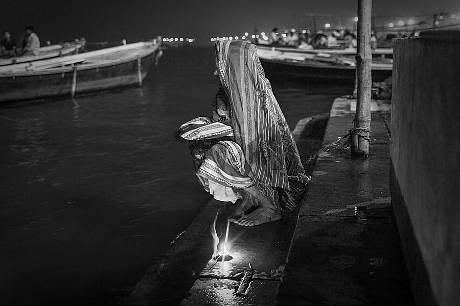 The narrative arc of "Belief" traverses the spiritual epicentres of Varanasi, New Delhi, Vrindavan, and Bhopal, offering a nuanced perspective on the country's devotional spirit. Varanasi emerges not merely as an ancient city but as a crucible of fervent spirituality, where individuals across generations converge upon the sacred Ganges. My eyes scrutinise the extraordinary spectrum of devotion, from the symbolic relinquishment of worldly possessions into the river's current—a desperate plea for divine intervention—to the quiet transfer of wisdom from mentors to disciples in the labyrinthine alleys. The poignant portrayal of elders seeking a celestial afterlife, drawing parallels with the myth of King Harishchandra, delves into the deep-seated anxieties and aspirations tied to eschatological beliefs. The capture of a young girl at Dev Deepavali, praying amidst a unique mud light spectacle, offers a poignant microcosm of individual yearning within a grand collective ritual.