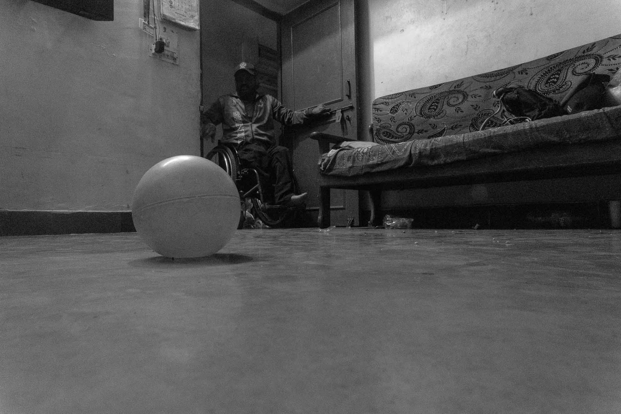 The series shifts attention away from spectacle and victory. Instead of focusing solely on moments of play, the images linger on preparation, waiting, travel, domestic spaces, and recovery—the overlooked realities of sport without sponsorship or infrastructure. The wheelchair appears not as a symbol of limitation, but as an everyday tool of persistence, embedded in daily life.